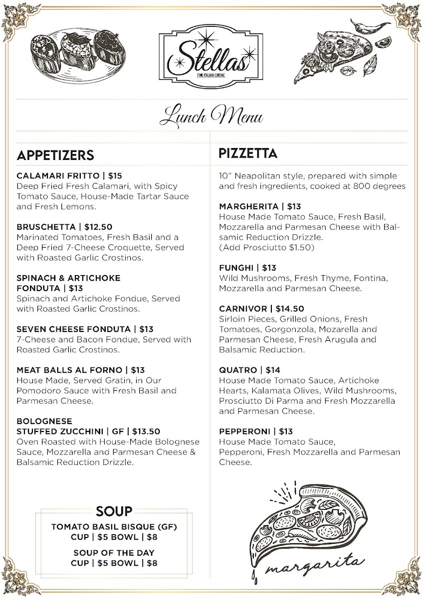 House Made Tomato Sauce, Mozzarella and Parmesan Cheese with Fresh Basil.