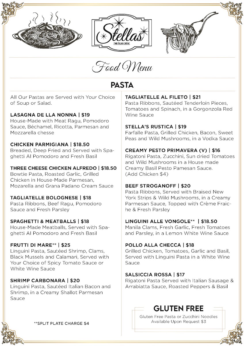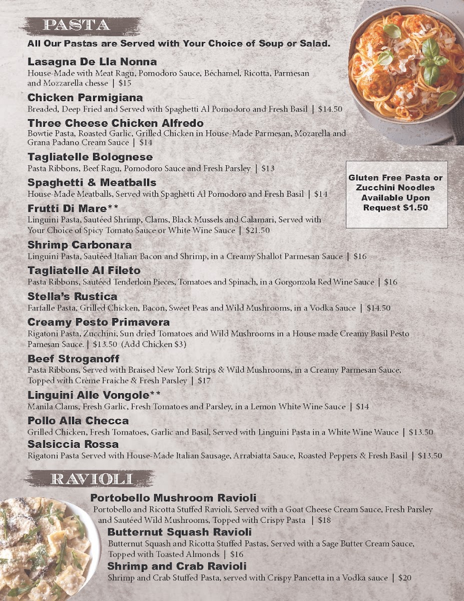 Linguini Pasta, Sautéed Shrimp, Clams, Black Mussels and Calamari, Served with Your Choice of Spicy Tomato Sauce or White Wine Sauce.