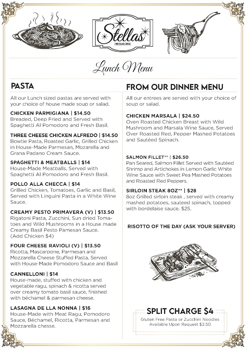 House-made, stuffed with chicken and vegetable ragu, spinach & ricotta served over creamy tomato basil sauce, finished with béchamel & parmesan cheese.