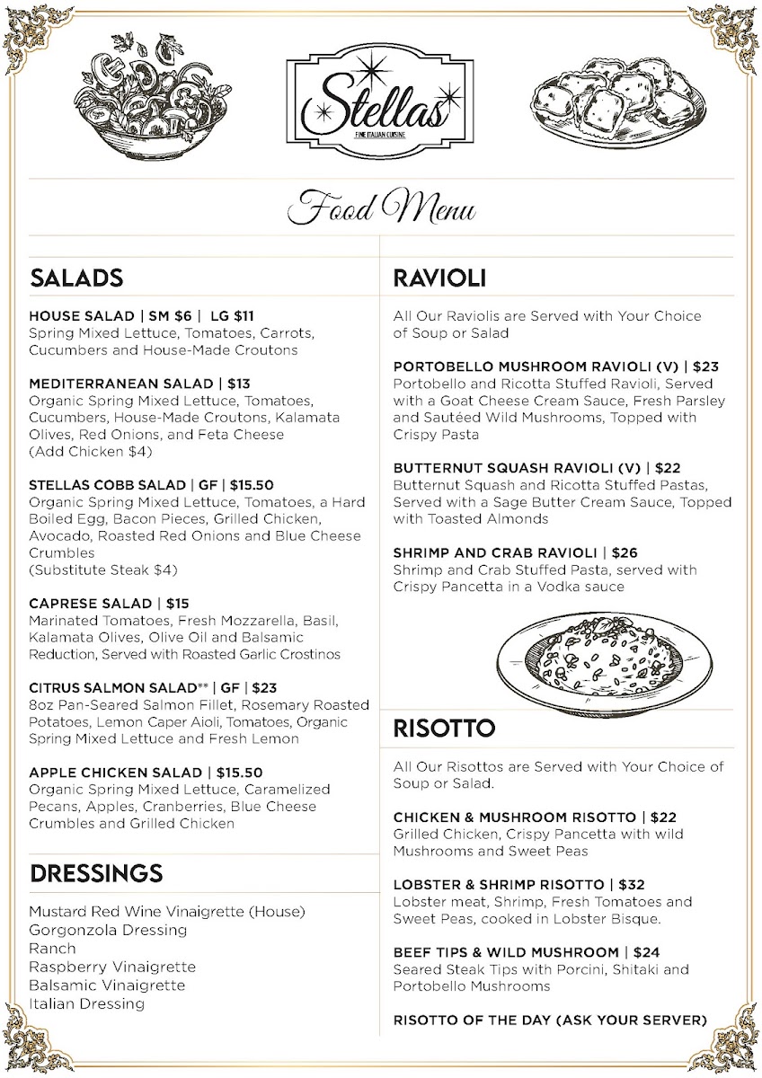 Asiago Stuffed Gnocchi served in a Creamy Blend of 5 Cheeses: Mascarpone, Ricotta,Goat, Gorgonzola, and Parmesan, with WildMushroom Sauce, finished with Fresh Chives.